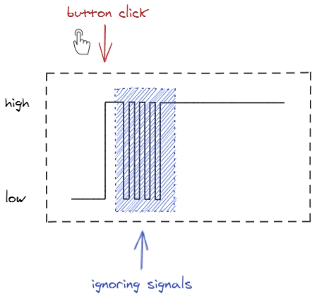 To mitigate this, once a signal from the button is received, the microchip stops processing signals from the button for a few microseconds while it’s physically impossible for you to press it again.