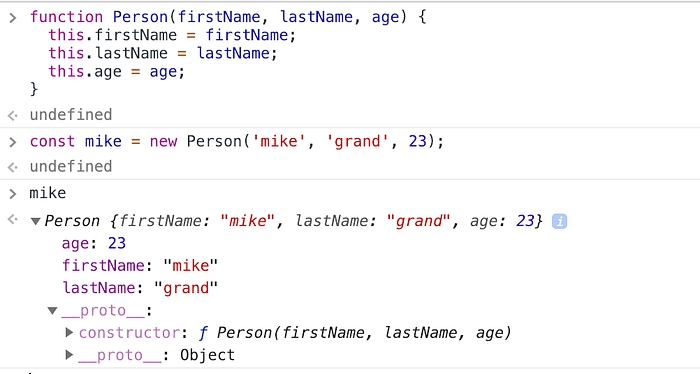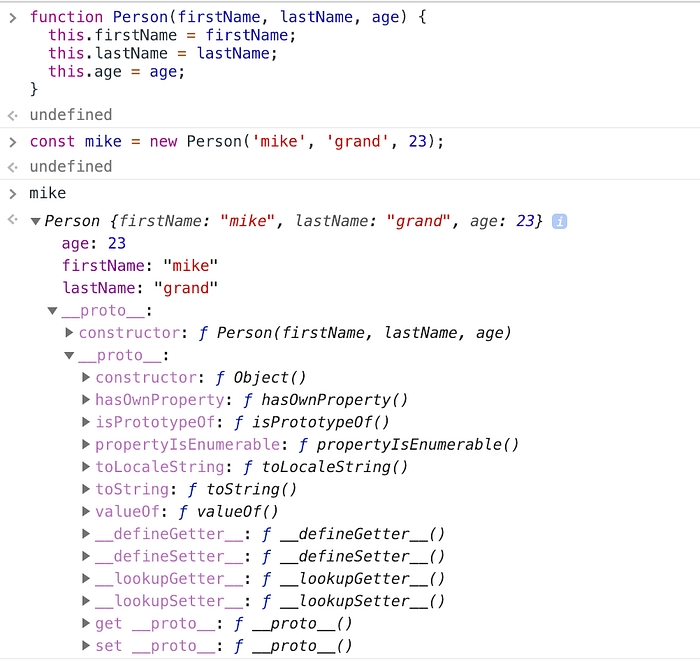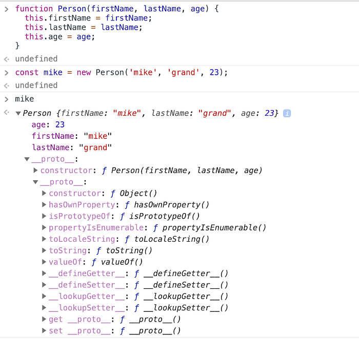 As we can see in the above console log I’ve expanded the __proto__ which is a pointer to its prototype object. And let’s try to find out whose prototype object is this. I hope you are familiar with JavaScript prototype concepts and if not feel free to have a look at my article on JavaScript prototypes. In order to find out the pointing prototype object of above mike object lets do simple === equality checks.![]()